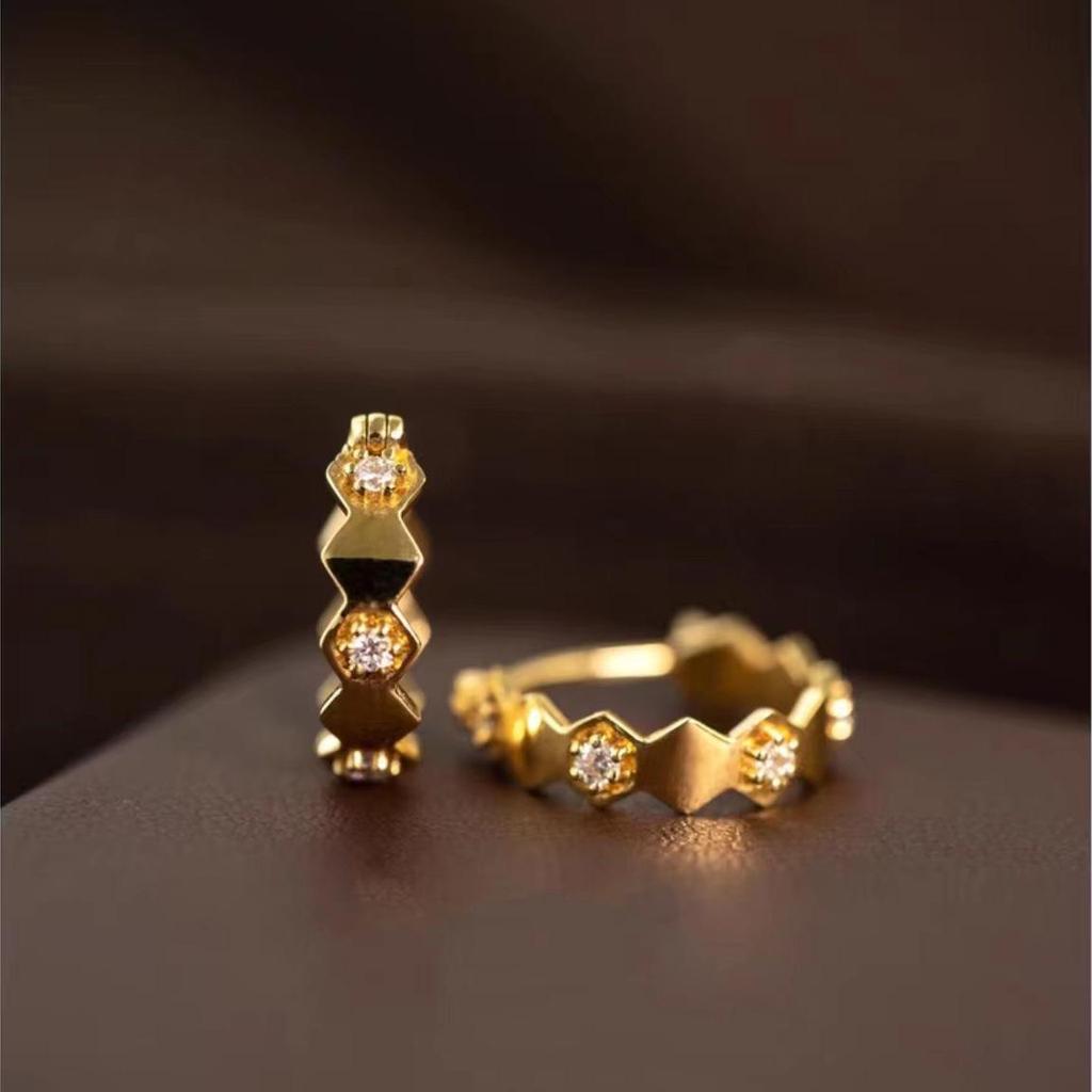 Sandgold Eingelegte Waben-Rauten-Ohrringe - Geometrische Vergoldete Damen-Creolen