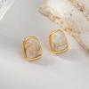 Reversible Maillard Zirkon Geometrische Quadratische Ohrklemmen mit Tropfenglasur-Design