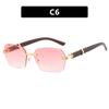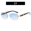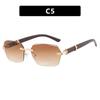 Trendige rahmenlose unregelmäßige quadratische Sonnenbrille mit kleinen Holzmaserbeinen