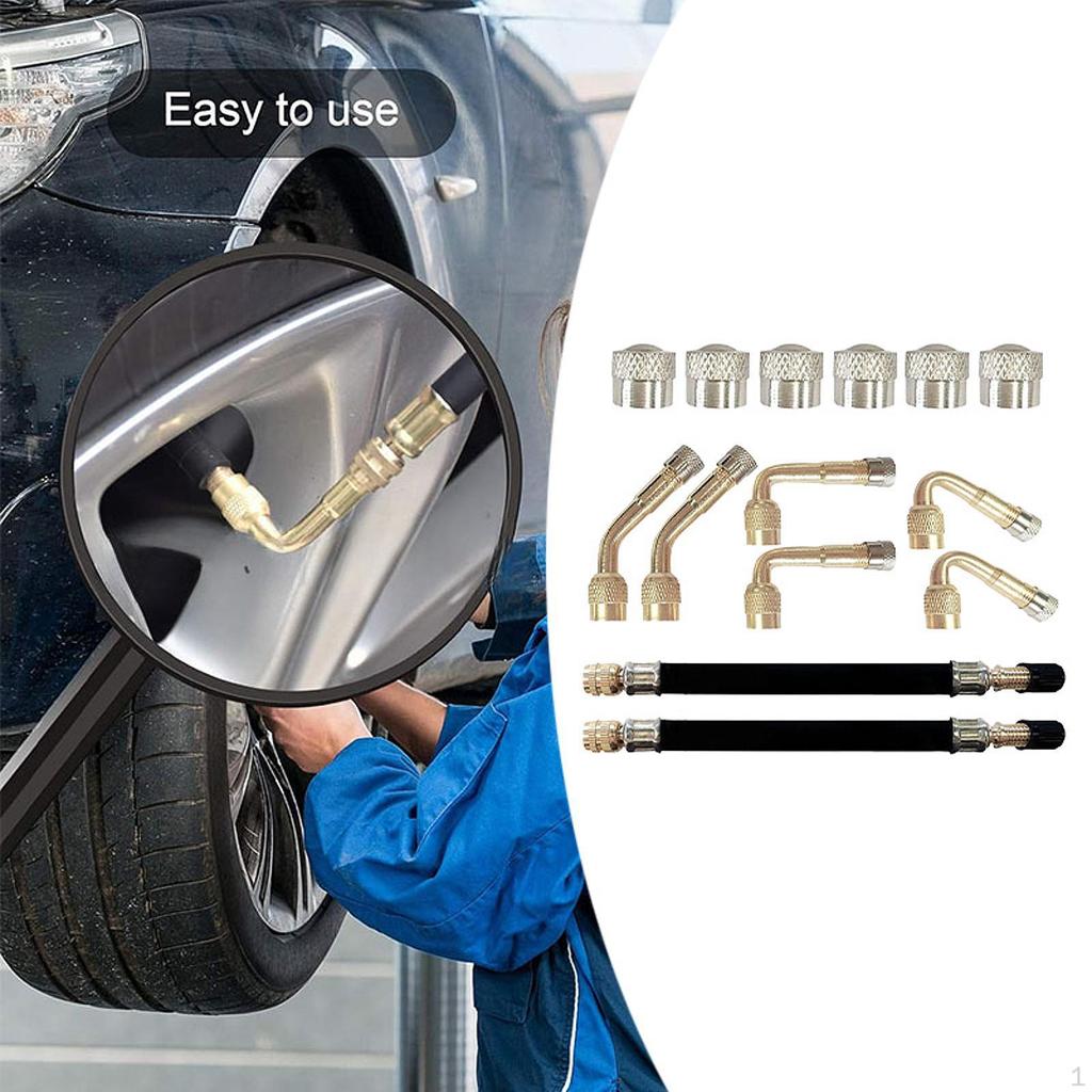 - 【Umfassendes Set】: Dieses Paket enthält 2 flexible Doppelventilverlängerungen, 6 Mehrwinkeladapter (45°, 90° und 135°), und 6 Schutzkappen, die eine Komplettlösung für Ihre Reifenfüllbedürfnisse bieten