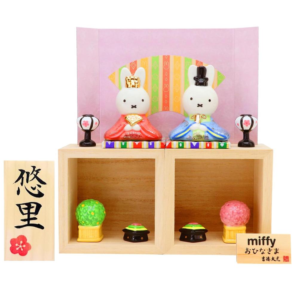 Osaka Choseido Miffy Hina-Puppe Kompakte Mini-Hina-Puppe mit Namensschild Keramik-Mini-Miffy-Hina-Puppe (Separat gesendet) (Mittelgroß, Stufenförmiges Display)