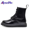 Martin Boots Damen Hartleder Rein Schwarze Linie Kurze Stiefel Herren- und Damenlederstiefel Runde Spitze Trend Lokomotivstiefel