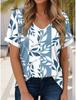 Sommer Damen T-Shirt 3D Pflanzenprint V-Ausschnitt Kurzarm Shirt Mode Damen T-Shirt Kleidung Damen T-Shirt