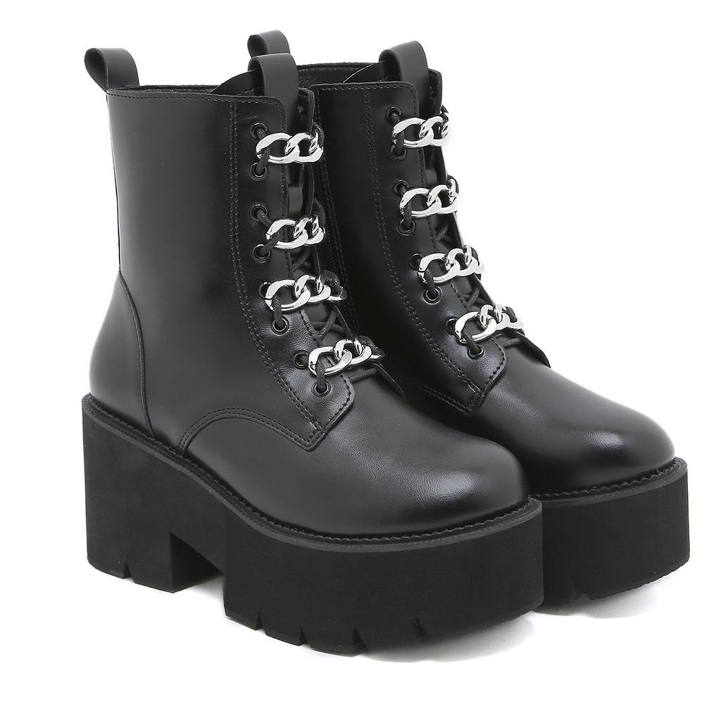 Martin-Stiefel mit dickem Absatz und dicker Sohle, beliebt, Damenstiefel mit vorderem Metallriemen, Reißverschluss an der Seite, Damen-Kurzstiefel mit dicker Sohle