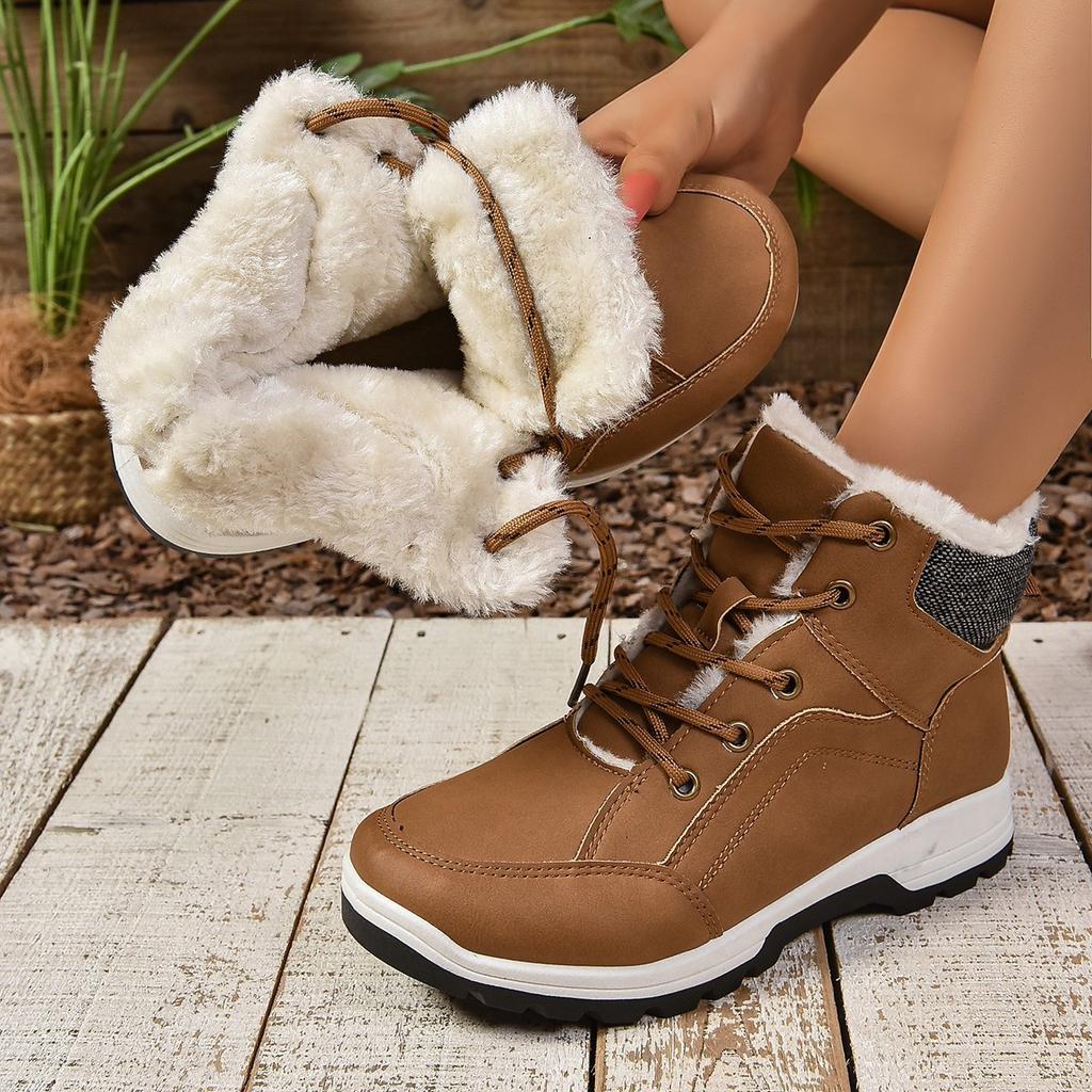 Lace-up thick-soled thermal velvet snow boots women's winter large-size thickened short cotton boots