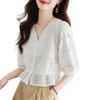 Aprikotfarbenes besticktes Hemd für Damen mit Dreiviertelärm Sommer Neu Besticktes Kleines Oberteil V-Ausschnitt Kleines Hemd
