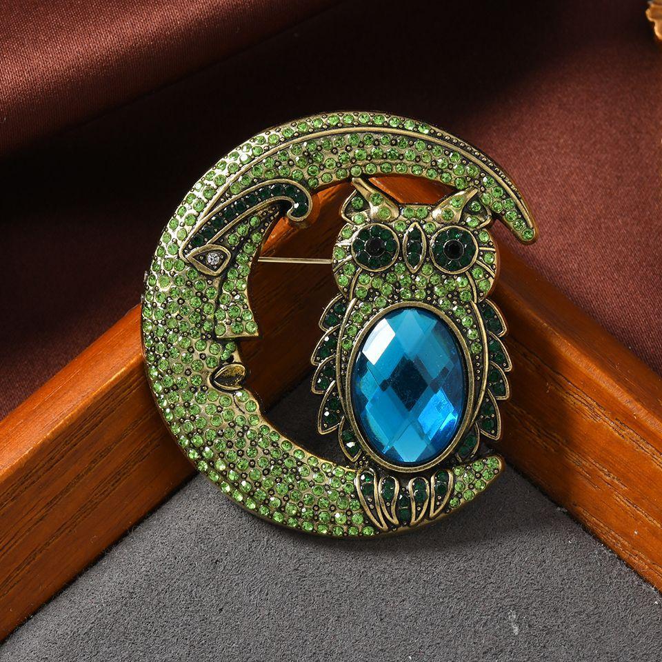 Vintage Mond Eule Brosche für Damen Strass Tier Party Korsagen Nadeln Geschenk