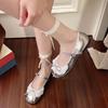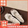 Französische silberne Mary Janes mit Schleife, flache Sohle, leichter Ausschnitt, Einzelne Schuhe, Frühling und Herbst, neu, Sommer, mit Rock, Doudou-Schuhe