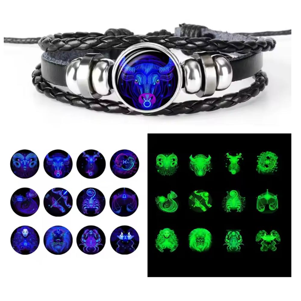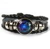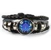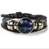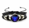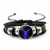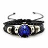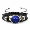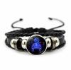 12 Sternbilder Sternzeichen Schwarzes geflochtenes Lederarmband Krebs Löwe Jungfrau Waage Gewebtes Glaskuppelschmuck Punk Herrenarmband
