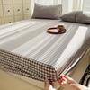 Modernes Design Hellgrünes Linellae-Muster Bedruckter Stoff Bettlaken Baumwolle Atmungsaktive Matratzenauflage Buntes Spannbettlaken mit Kissenbezug