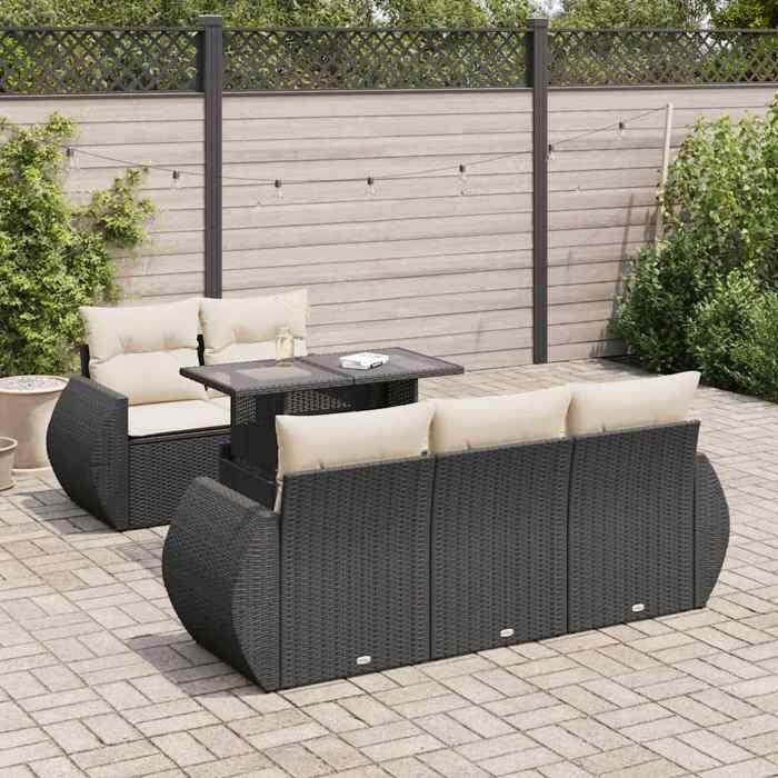 VidaXL Salon de jardin 6 pcs avec coussins noir résine tressée 3326567