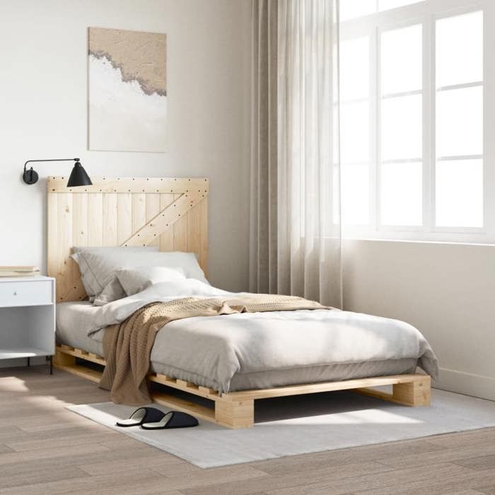 VidaXL Cadre de lit et tête de lit 100x200 cm bois de pin massif, lit, meuble de chambre à coucher, lit en bois, lit simple, 3281551