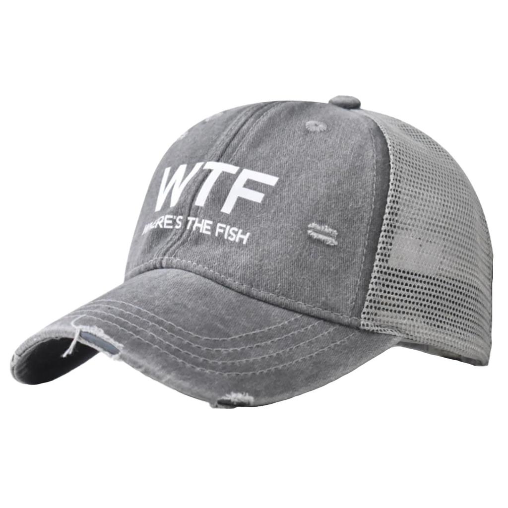 Baseball English CZA423 [White Fang] Hat, Cap, Cap, Breathable, Mesh, Letters, Stylish, Simple, Men's, Women's, (Gray)