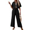 Damen Zweiteiler Lässig Locker Kurzarm Kragen Button-Down Oberteile Und Elastische Kordelzug Weitbeinige Hosen