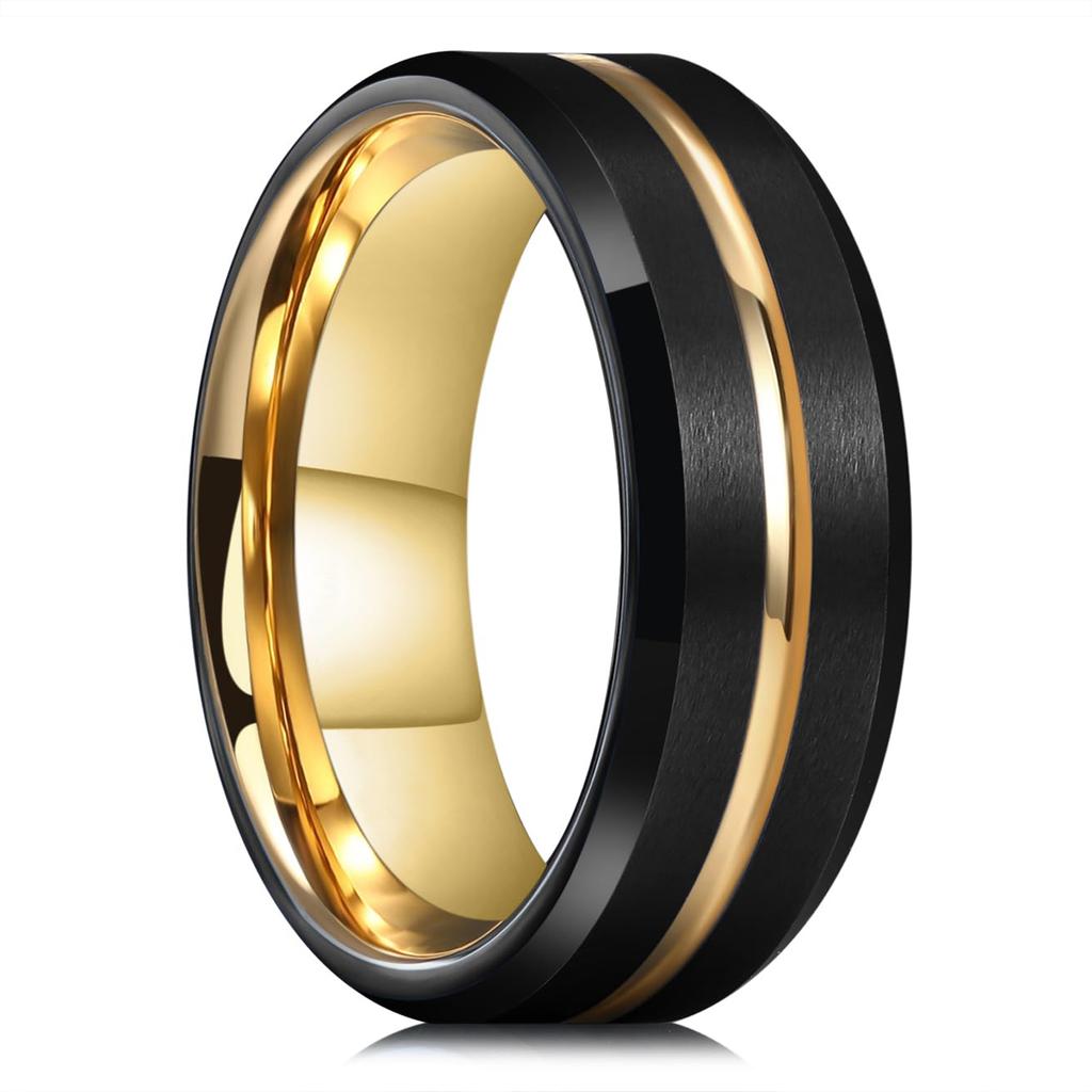 Trendige 8mm Herren Edelstahlringe Schwarz Gebürstet Goldfarben Rille Abgeschrägte Kante Verlobungsring Herren Hochzeitsschmuck