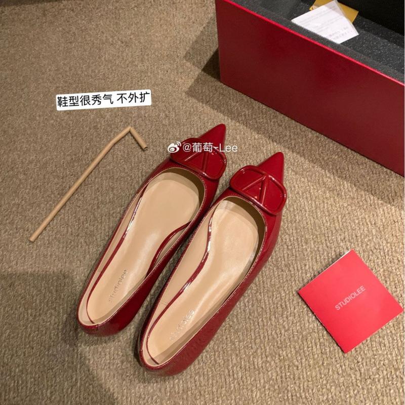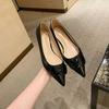 Temperament klein spitz Promi-Stil Lackleder V-Schnalle Pendler flacher Absatz Einzelne Schuhe Frauen