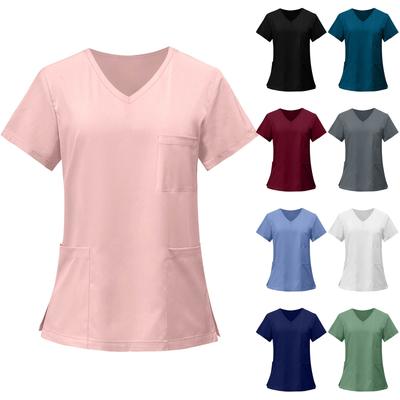 Damen Freizeit Einfarbig Tasche Arbeitsuniform Oberteil Rundhals Offener Saum Schützend