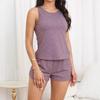 Damen Pyjama Set Ärmelloses O-Ausschnitt Tanktop mit Shorts Nachtwäsche Set Sommer Casual Zweiteiler