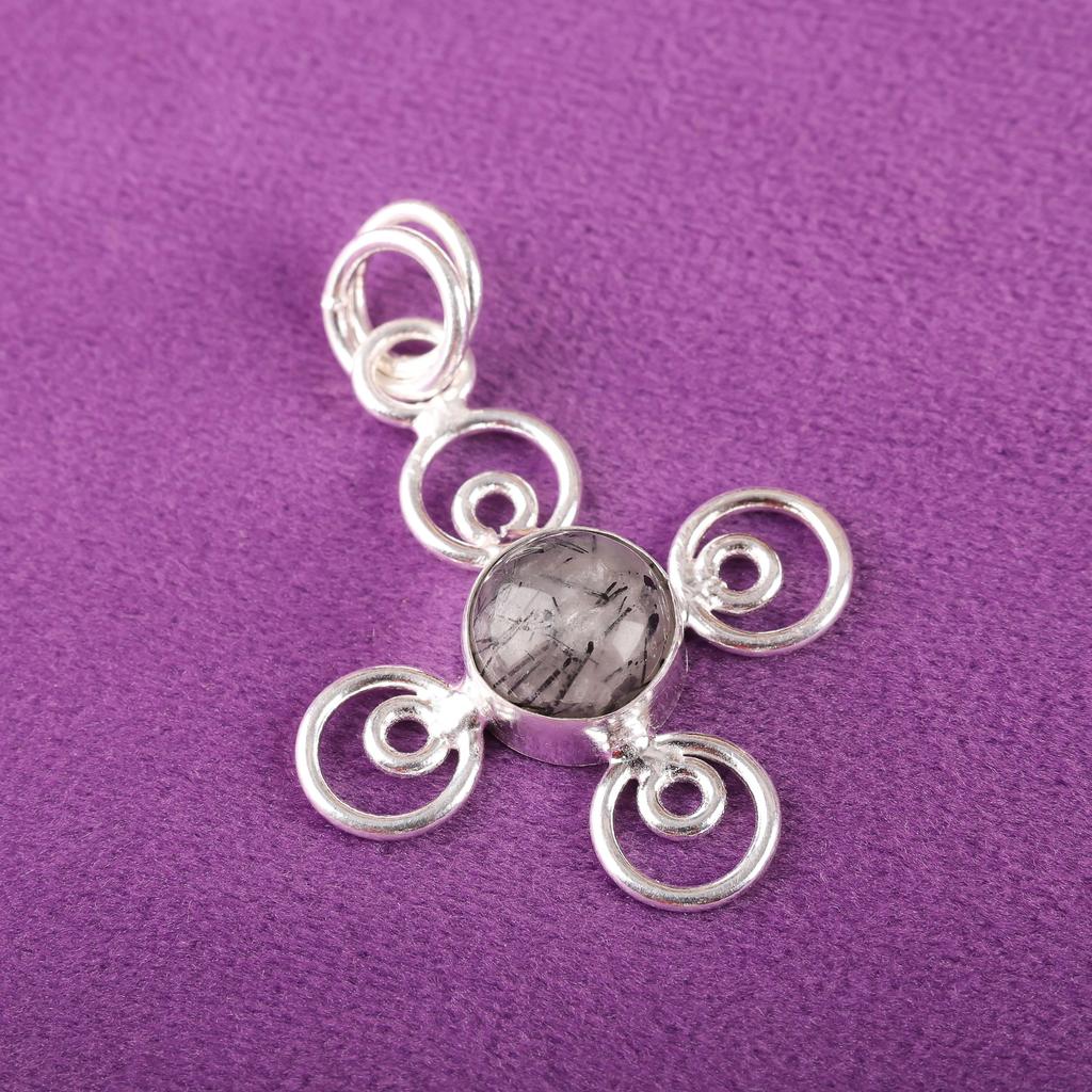 Schmuck mit schwarzem Rutil, 925 massiver Sterlingsilber Edelsteinanhänger, handgefertigter Anhänger, für den Memorial Day