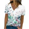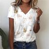 Sommer V-Ausschnitt 3D Floral Schlicht Grafikdruck Top Modische Lässige Kurzarm Damen T-Shirts