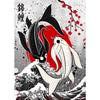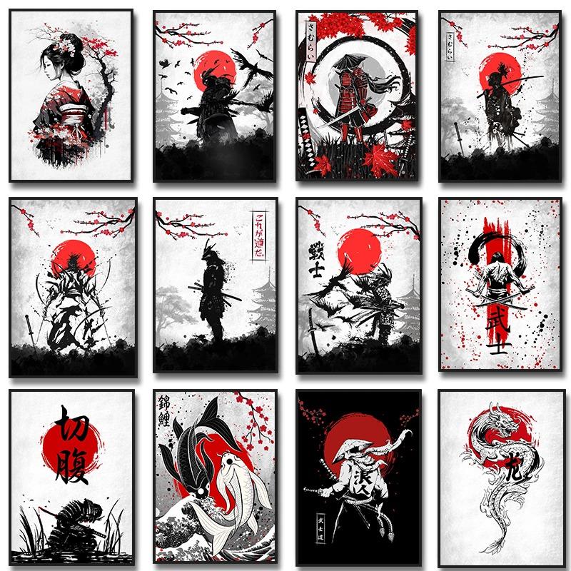 Japanische Schwarze Samurai Geisha Koi Karpfen Krieger Figuren Sonnenuntergang Kunst Malerei Wand Leinwand Poster und Drucke Wohnzimmer Heimdeko