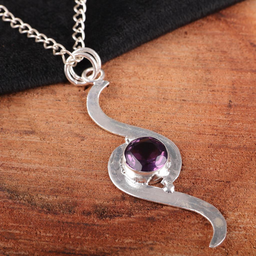 Amethyst Anhänger Edelstein Schmuck, 925 Sterling Silber Anhänger, Geschenk für Frauen handgefertigter Anhänger