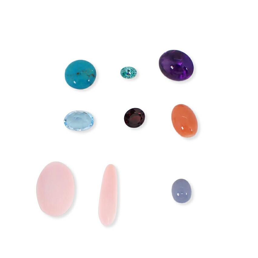 [Used] 9pcs of loose stones including turquoise, amethyst, zirconia, blue topaz, and garnet/g531-26