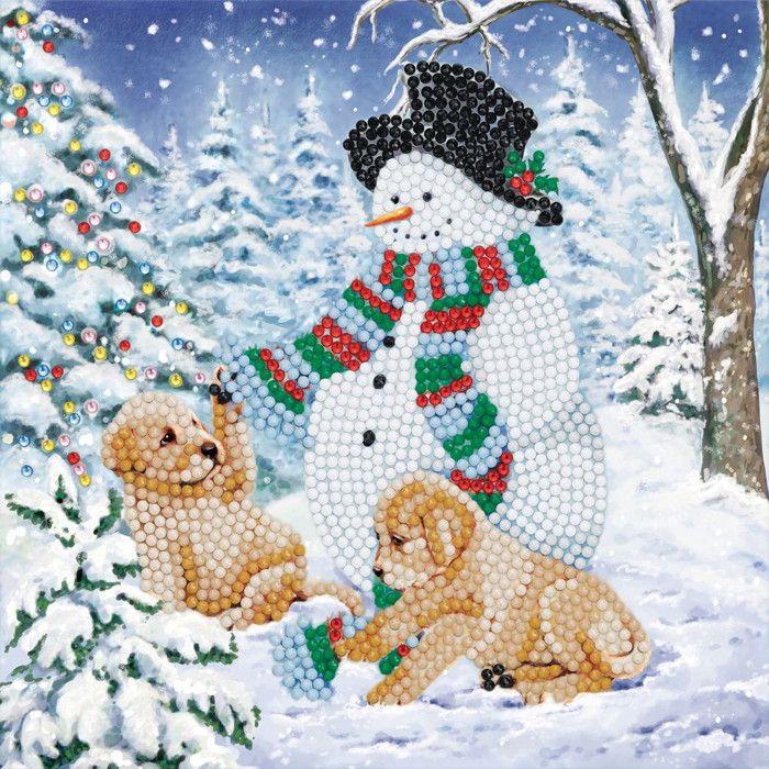 CRYSTAL ART Kit carte broderie diamant 18x18cm Chiots bonhomme neige
