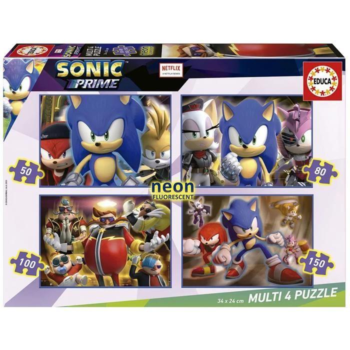 Puzzle phosphorescent - EDUCA - Multi 4 Sonic Prime Neon - 50-150 pièces - 34x24 cm - Multicolore