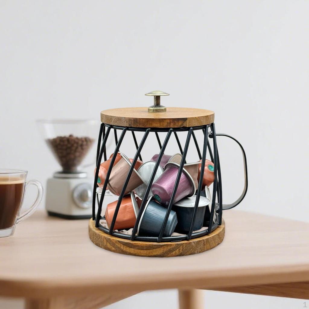 - 【Iron Craftsmanship】: Crafted from sturdy iron and wood, this Coffee Pod storage basket combines durability with elegance. It's resistant to bending, easy to clean, and built to withstand daily use