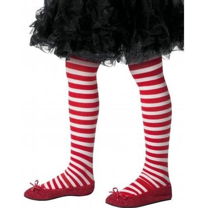 Collants enfant rayés blancs et rouges - Taille unique - Pour déguisements de Noël