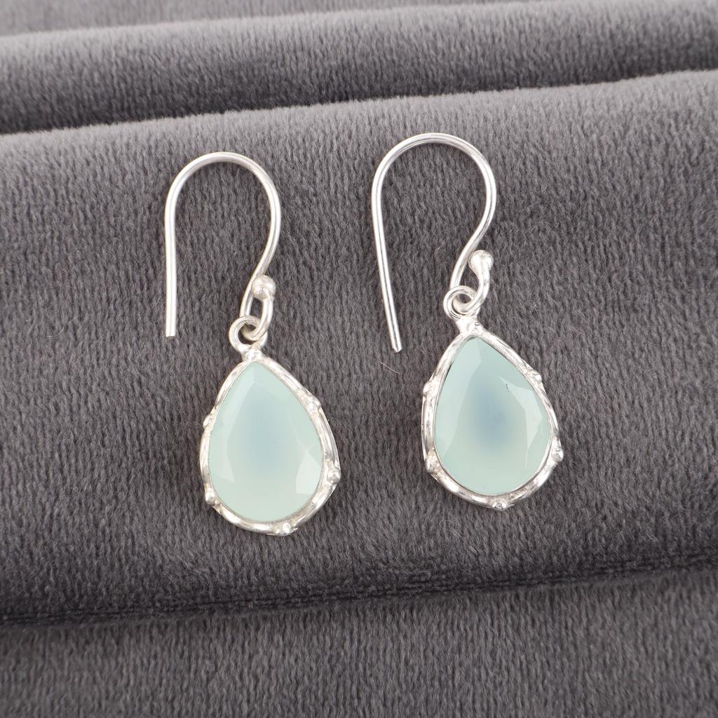 Ohrringe aus Aquamarin-Chalcedon, 925er Sterlingsilber, Edelsteinohrringe, handgefertigtes, zartes Schmuckgeschenk für Sie