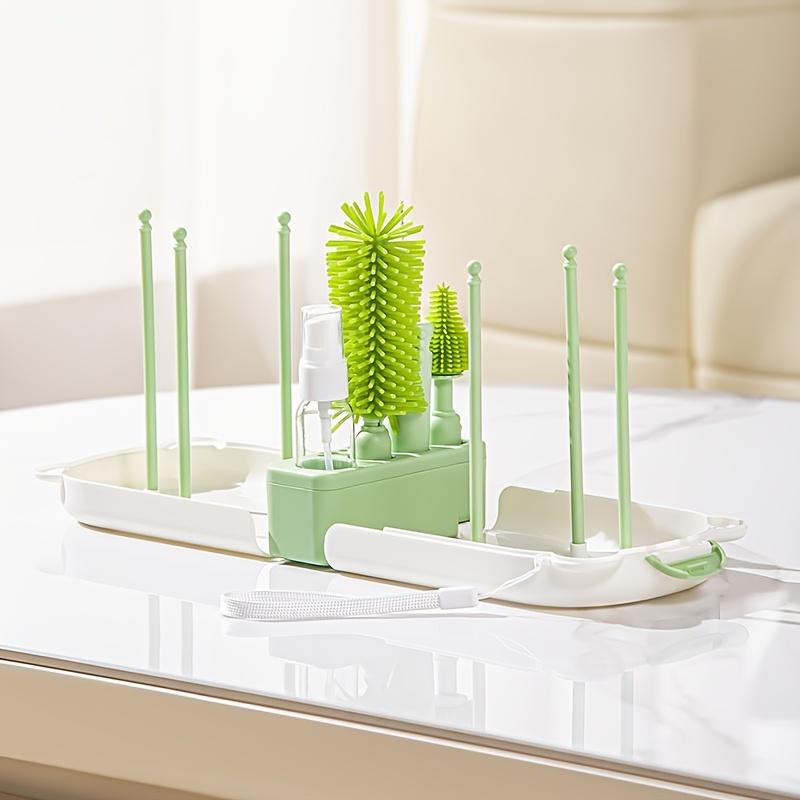 Silicone portable bottle brush special for washing, drain rod storage box set, travel cleaning brush set, teddy bear portable cleaning brush