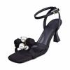 Sommer 2025 Perlenblume Zehenfrei High Heels Sandalen Damen Bule Vielseitig Klobiger Absatz Modisch Lässig Runde Zehen
