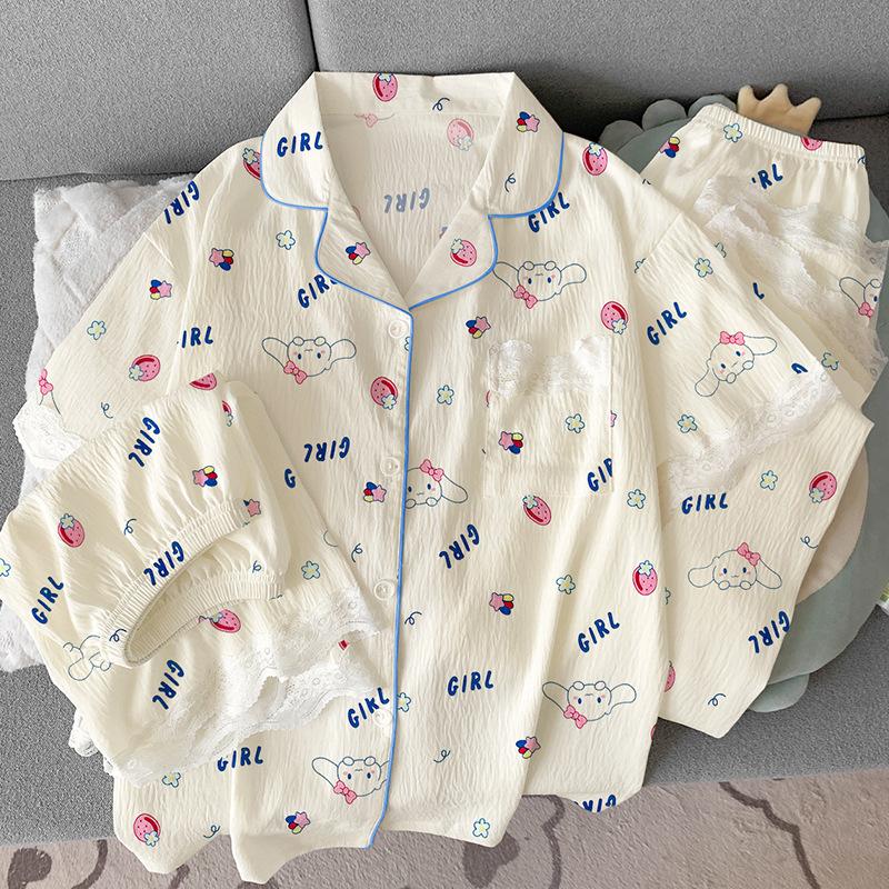 Summer Cartoon Milk Cute Jade Cinnamon Dog Pajamas Women'S Cloud Cotton Short Sleeves Cute Three-Piece Loungewear Can Be Worn Outside