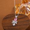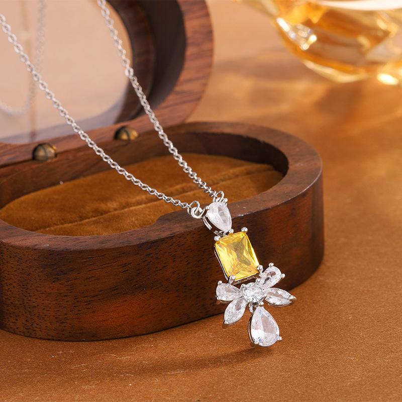 Exquisite Yellow-Pink Rectangular Gemstone Bow Water Drop Necklace Feminine Bridal Dress Accessory Pendant Party Birthday Gift