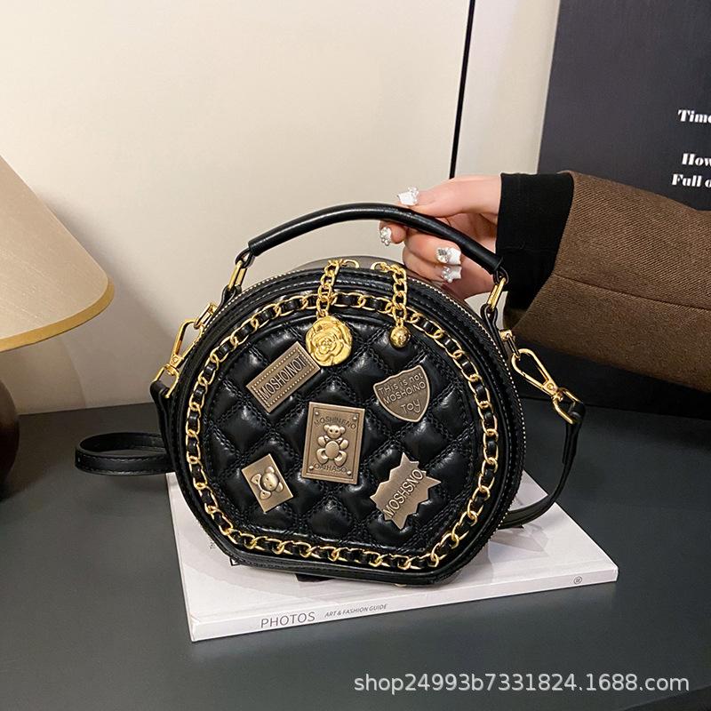 Xiaoxiangfeng Tasche 2025 neue koreanische Version Mode personalisiertes Splicing Trend Einzel-Schulter Damen Umhänge kleine runde Tasche