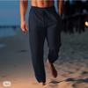 Herren Baumwolle Leinen Hose Sommerhose Strandhose Kordelzug elastischer Bund gerade Hose bequem atmungsaktiv Freizeithose
