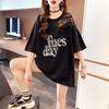 Women Korean Fashion Sexy Lace Patchwork Sequin Oversize T Shirt Summer Black White Short Sleeve Streetwear Tunic Tops Ropa