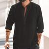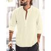 Europäisch Amerikanischer Außenhandel Herren Freizeit Stehkragen Einfarbig Langarmhemd WISH Slub Baumwolle und Leinen Hemd