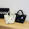 Steppstickerei Schleifenknoten Handtasche Schlichter Stil Weiche Baumwolle Pendler Lunchbox Tasche Studenten Handtasche Beutel AVE