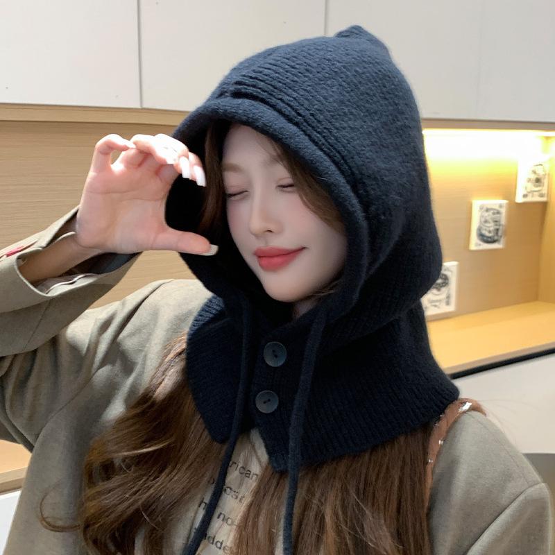Hat scarf integrated hat women's fashion warm balaclava hat knitted scarf