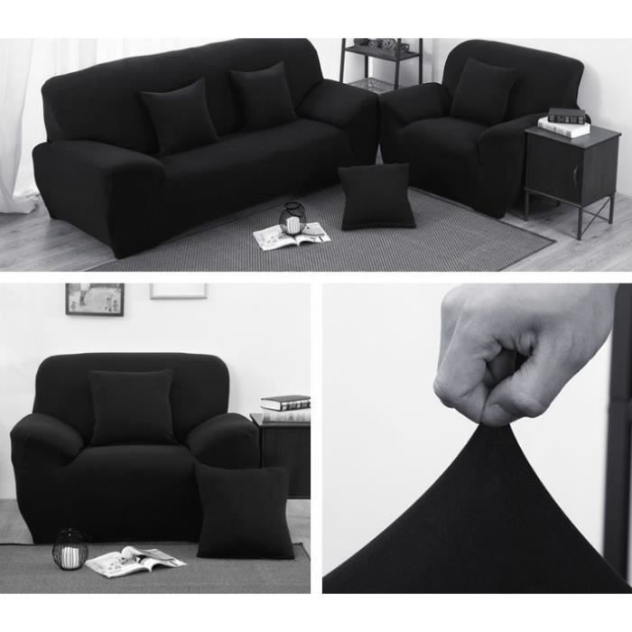 Housse de canapé - Moonmini - 3 places super stretch 190-230cm - 1 place 90-140cm - 3 Taies 45x45cm - Noir