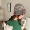Retro mehrfarbige Häkelwollmütze für Damen, warm für Herbst und Winter, großer Kopfumfang und kleine gestrickte Ohrenschützmütze