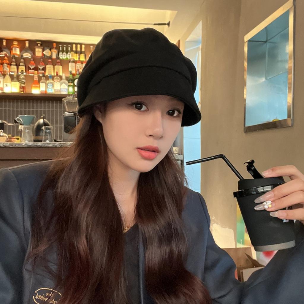 Hepburn elegant temperament shows the face small octagonal hat children autumn and winter new versatile suede Bere painter hat stack hat