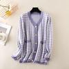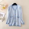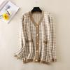 Damen Lässiger Bequemer Gestrickter Cardigan Hahnentritt V-Ausschnitt Einreihig Langarm Oberteil Schwarz Grau Rosa Einheitsgröße
