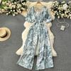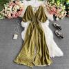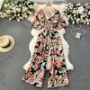Sexy Waist Slim Jumpsuit with Dolman Sleeves Polka Dot Print Wide Leg Trousers Neck Design