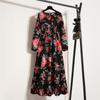 Bedrucktes Midi-Taillen-Vierfarben-Temperament Pendler Vier-Wege-Stretch Bedrucktes Ungefüttertes Langes Kleid Kleider