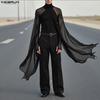 INCERUN Men High Waist Zip-up Solid Color Casual Long Palazzo Pants