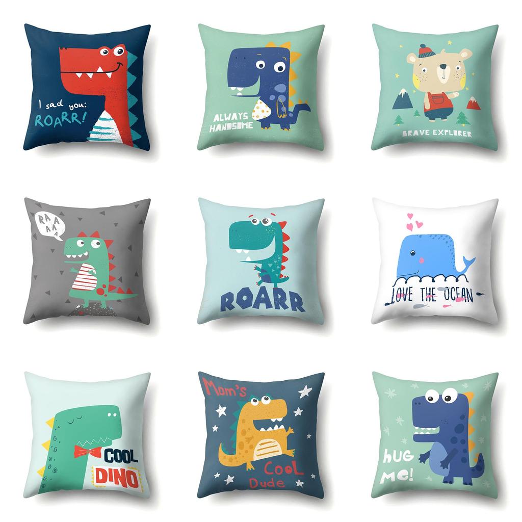 Geometrisches Dinosaurier-Muster Polyester Einseitiger Kissenbezug Zuhause Sofa Kissenbezug Wohnzimmer Schlafzimmer Kissenbezug